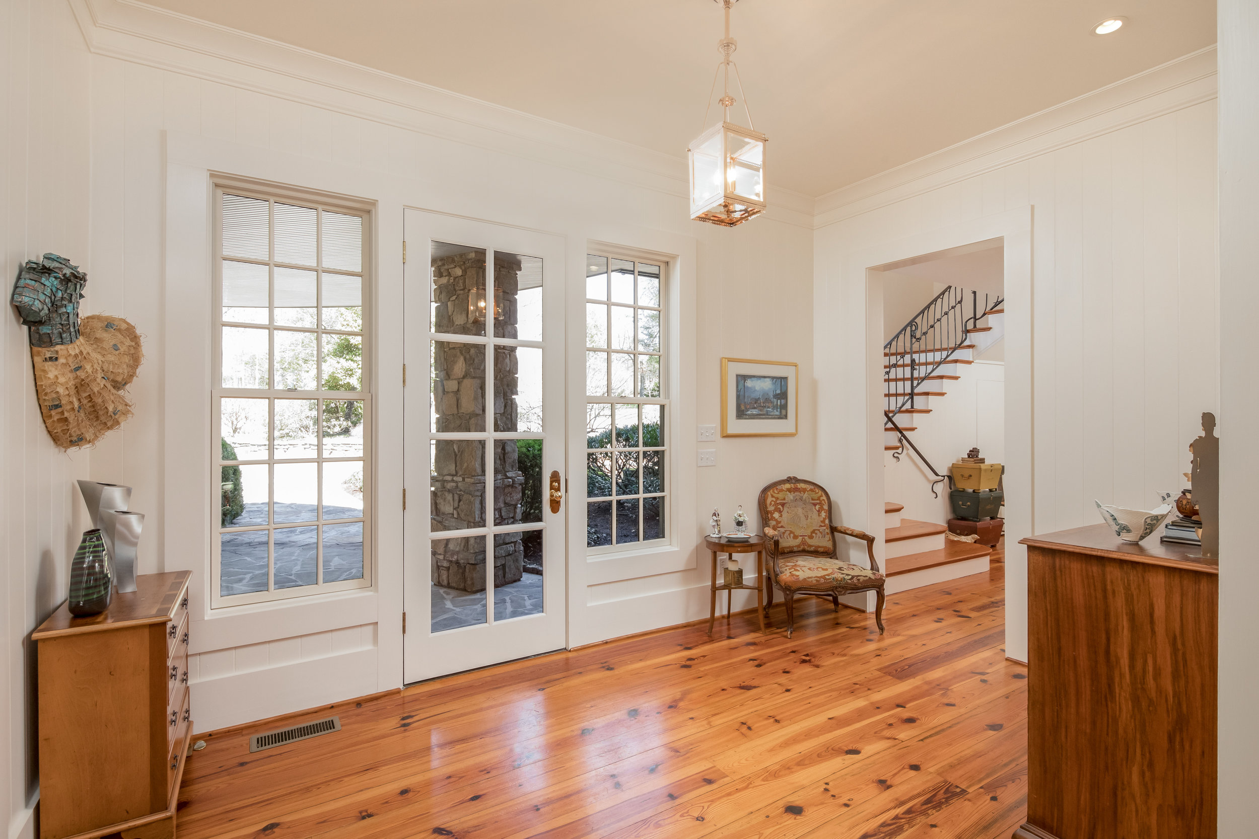Built in 1996, the home has 4 bedroom, 4 full bath and two half baths. A notable feature of the house is the outdoor living space featuring decks off the kitchen and master bedroom, a screened in porch and large pool area. A large playroom upstairs could easily serve as a fifth bedroom. The home features wide salvaged heart of pine floors, cedar shake siding, a cedar shake roof, and all custom doors. It has a custom designed wrought iron banister and a pair of custom made living room chandeliers. Ceiling heights are over 10 feet or more in many of the rooms. Great light flows through all Pella windows. A gorgeous gunite pool surrounded by gardens is the focal point of the lovely private backyard.